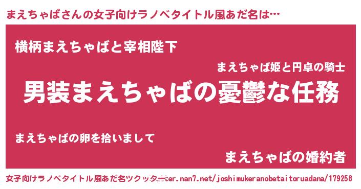 | 男性向けラノベタイトル風あだ名 | 『うちのまえちゃばが世界を掌握している!』 |