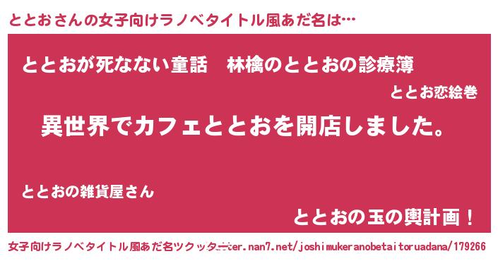 | 胡散臭い通販商品みたいなあだ名 | 『前代未聞の健康食品…その名も「ととお」』 |