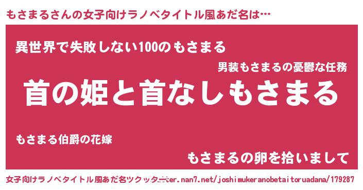 | ヘコむあだ名 | 『もさまる(小並感)』『もさを』 |