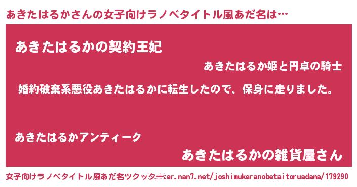 | 男性向けラノベタイトル風あだ名 | 『転生したらあきたはるかだった件』 |