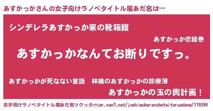 | 意味不明あだ名 | 『自称あすかっか』 |