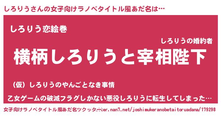 | 男性向けラノベタイトル風あだ名 | 『しろりうに滅ぼされるだけの簡単なお仕事です』 |