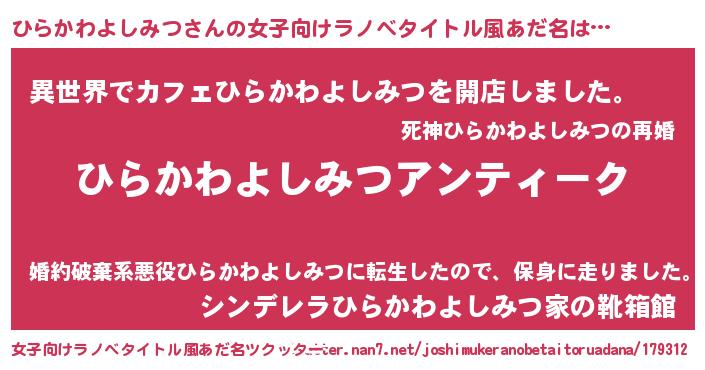 | 意味不明あだ名 | 『自称ひらかわよしみつ』 |