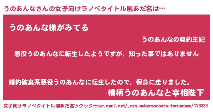 | 意味不明あだ名 | 『住所不定無職うのあんな(43歳)』 |