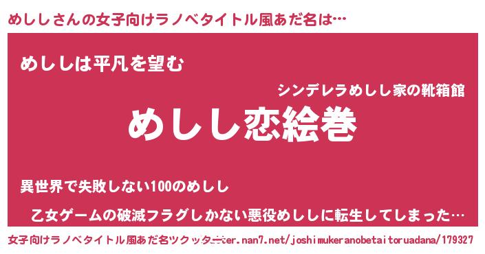 | 男性向けラノベタイトル風あだ名 | 『ノーゲーム・ノーメシシ』 |