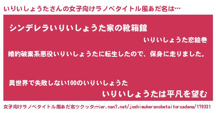 | 男性向けラノベタイトル風あだ名 | 『イリイショウタスレイヤー』 |