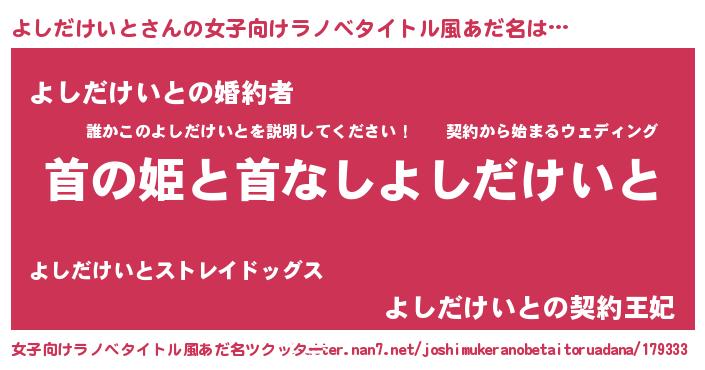 ファンタジー風あだ名 | 『エターナルヨシダケイトー』 |
