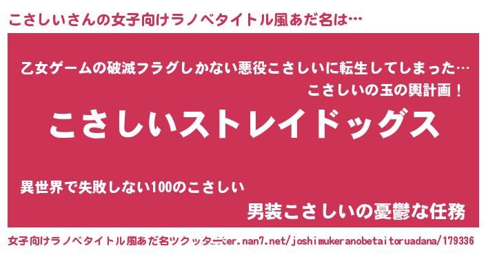 | 男性向けラノベタイトル風あだ名 | 『Re:こさしいから始める異世界生活』 |