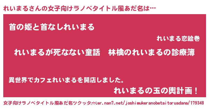 | 男性向けラノベタイトル風あだ名 | 『魔弾の王とれいまる』 |