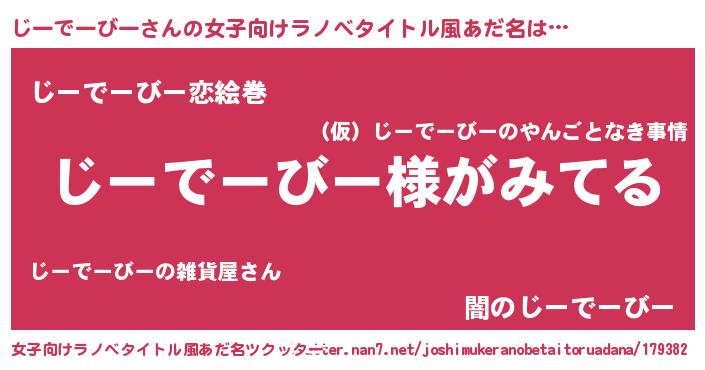 | 男性向けラノベタイトル風あだ名 | 『じーでーびーの嫁は女の子じゃないと思った?』 |