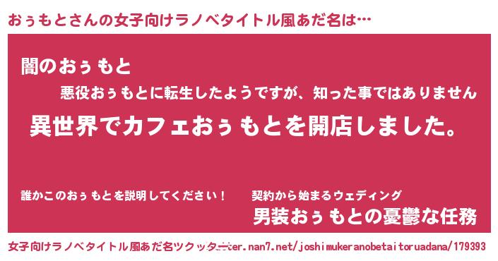 | 男性向けラノベタイトル風あだ名 | 『誰もが恐れるあのおぅもとが、ぼくの専属メイドになるようです。』 |