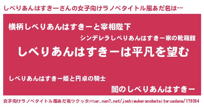 | 男性向けラノベタイトル風あだ名 | 『ダンジョンにしべりあんはすきーを求めるのは間違っているだろうか』 |