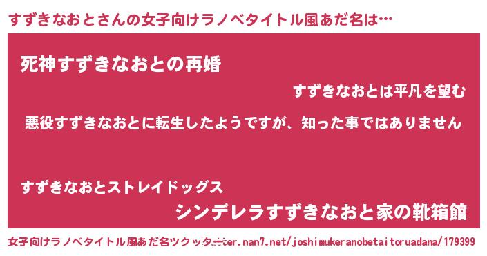 | 男性向けラノベタイトル風あだ名 | 『この素晴らしい世界にすずきなおとを!』 |