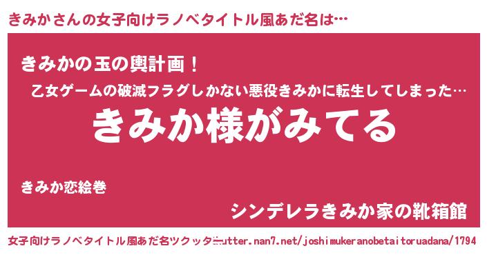 | 男性向けラノベタイトル風あだ名 | 『きみかの嫁は女の子じゃないと思った?』 |