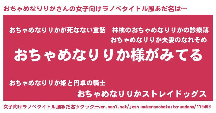 | 男性向けラノベタイトル風あだ名 | 『おちゃめなりりかの嫁は女の子じゃないと思った?』 |