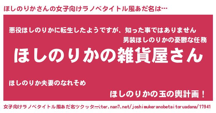 | 男性向けラノベタイトル風あだ名 | 『やはりほしのりかの青春ラブコメはまちがっている 』 |