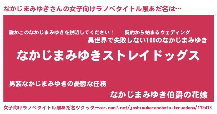| 男性向けラノベタイトル風あだ名 | 『Re:なかじまみゆきから始める異世界生活』 |