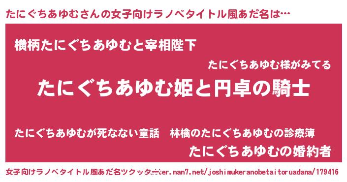 | 男性向けラノベタイトル風あだ名 | 『タニグチアユムアートオンライン』 |