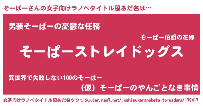 | 欧米人風あだ名 | 『ケンブリッジそーぱー』 |