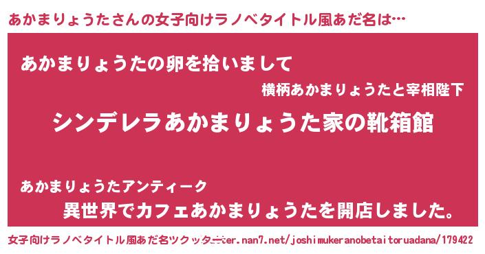 | 意味不明あだ名 | 『とにかく怪しいあかまりょうた』 |