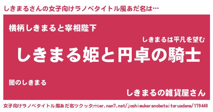 | 男性向けラノベタイトル風あだ名 | 『シキマルアートオンライン』 |
