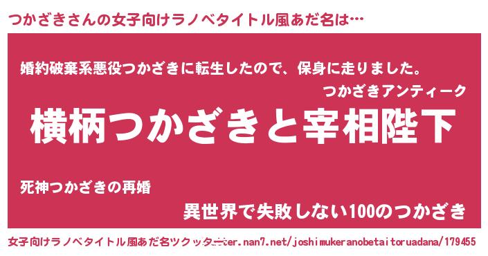 | 胡散臭い通販商品みたいなあだ名 | 『来世でも幸せになれる健康食品…その名も「つかざき」』 |
