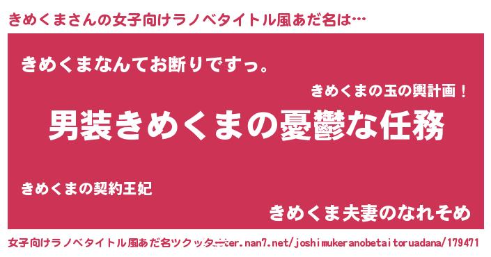| 意味不明あだ名 | 『自称きめくま』『しいたけ科きめくま属』 |