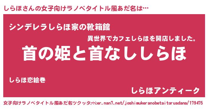 | 男性向けラノベタイトル風あだ名 | 『はたらくしらほさま!』 |