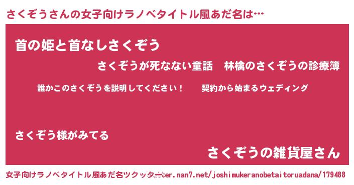 | 胡散臭い通販商品みたいなあだ名 | 『億万長者になれるブレスレット…その名も「さくぞう」』 |
