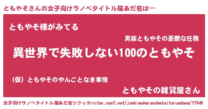 | 男性向けラノベタイトル風あだ名 | 『ともやそという概念が存在しない退屈な世界 』 |