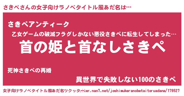 | 伝説のあだ名 | 『聞きしに勝る吟遊詩人さきぺ』 |