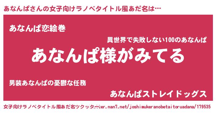 | 胡散臭い通販商品みたいなあだ名 | 『全米が絶賛したサプリメント…その名も「あなんぱ」』 |