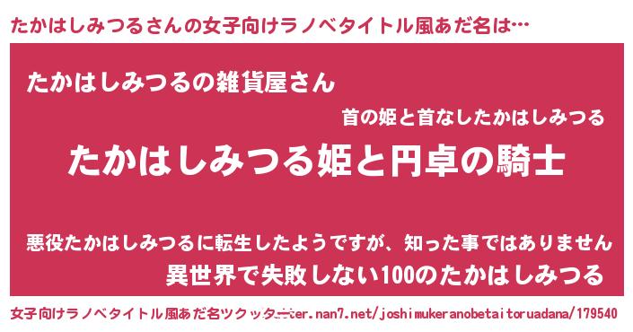 | 男性向けラノベタイトル風あだ名 | 『たかはしみつるの憂鬱』 |
