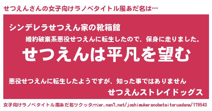 | 胡散臭い通販商品みたいなあだ名 | 『信頼と実績のサプリメント…その名も「せつえん」』 |