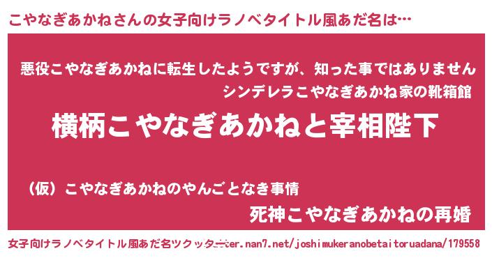 | 肩書あだ名 | 『こやなぎあかねマネージャー』 |