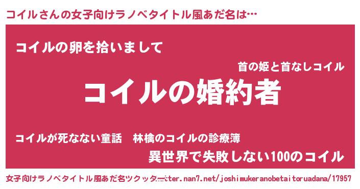 | 胡散臭い通販商品みたいなあだ名 | 『運命の人と巡り会える高級そうな絵画…その名も「コイル」』 |
