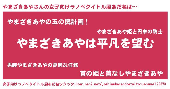 | 男性向けラノベタイトル風あだ名 | 『ダンジョンにやまざきあやを求めるのは間違っているだろうか』 |