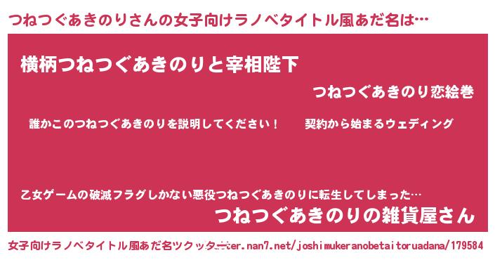 | 男性向けラノベタイトル風あだ名 | 『ツネツグアキノリアートオンライン』 |
