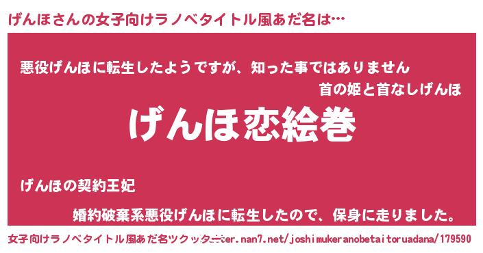 | ヘコむあだ名 | 『げんほ(笑)』『げんもー』『つくし』 |