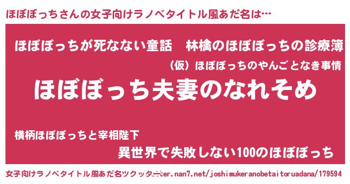 | ヘコむあだ名 | 『ほぼぼっち(笑)』『ほぼにー』 |