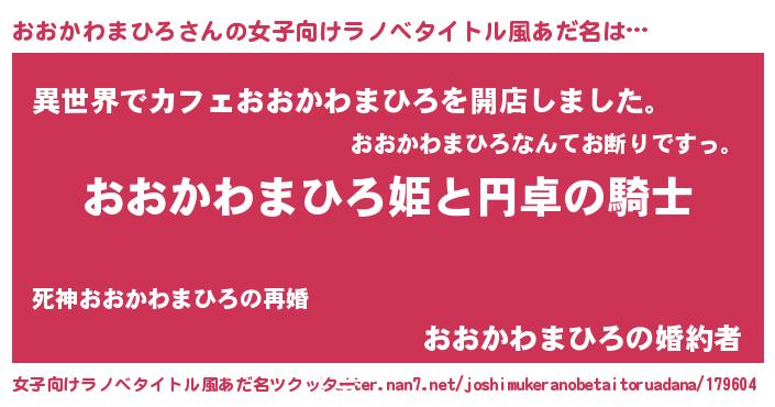 | 男性向けラノベタイトル風あだ名 | 『おおかわまひろの憂鬱』 |