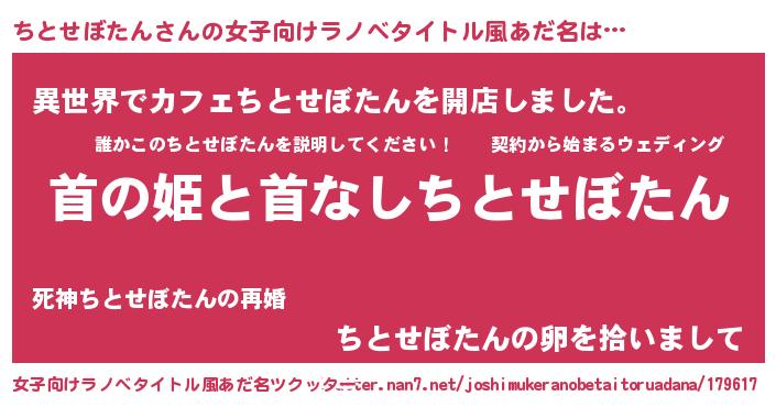 | 男性向けラノベタイトル風あだ名 | 『はたらくちとせぼたんさま!』 |