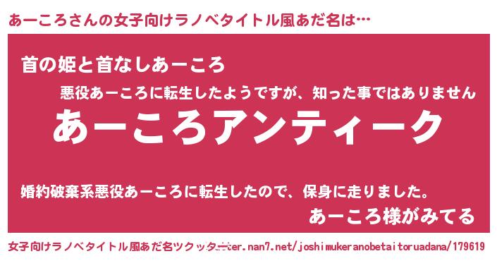 | ヘコむあだ名 | 『あーっちょ』『あーころ(遠い目)』 |