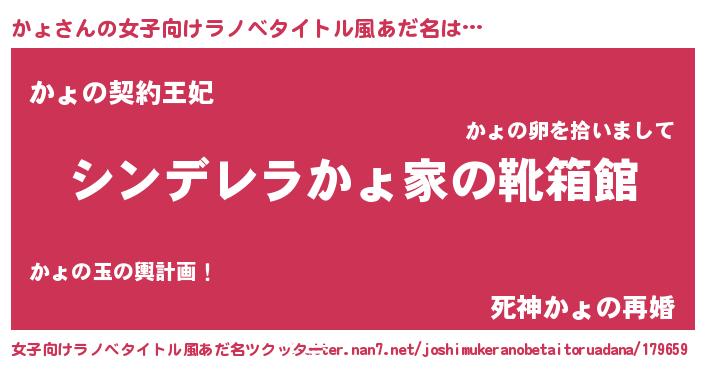 | 男性向けラノベタイトル風あだ名 | 『緋弾のカョ』『ノーゲーム・ノーカョ』 |