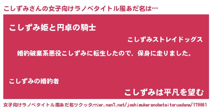 | 男性向けラノベタイトル風あだ名 | 『転生したらこしずみだった件』 |