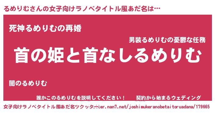 | 男性向けラノベタイトル風あだ名 | 『はたらくるめりむさま!』 |