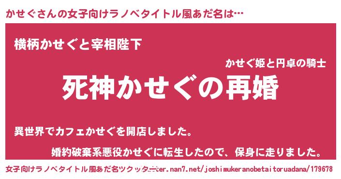 | 可愛いあだ名 | 『かせちゅっちゅ』『かせぷりん』 |