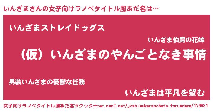 | 男性向けラノベタイトル風あだ名 | 『いんざまの憂鬱』 |