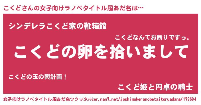 | 男性向けラノベタイトル風あだ名 | 『こくどの嫁は女の子じゃないと思った?』 |