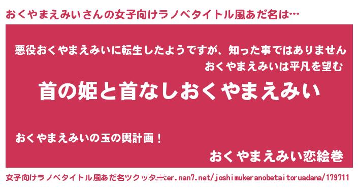 | 胡散臭い通販商品みたいなあだ名 | 『ハリウッド女優が絶賛した100年もののヴィンテージワイン…その名も「おくやまえみい」』 |